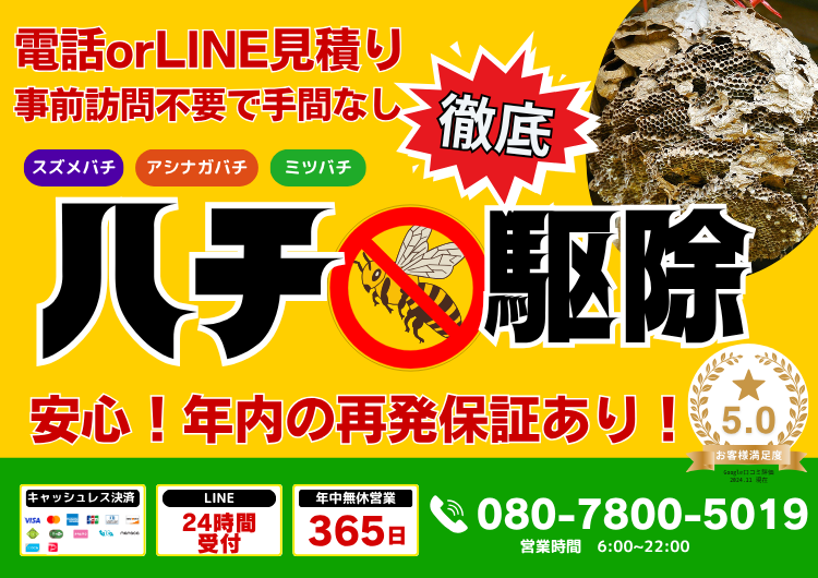 ハチの巣が天井裏にできてしまい、自分では手が出せず焦っていましたが、プロの技術で迅速に駆除していただき、安心感が戻りました。