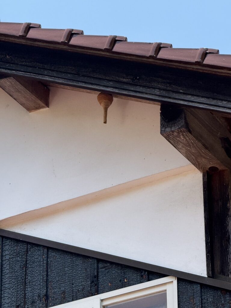 場所は2階の軒下。遠くからでも巣がはっきりと確認できる状態でした。