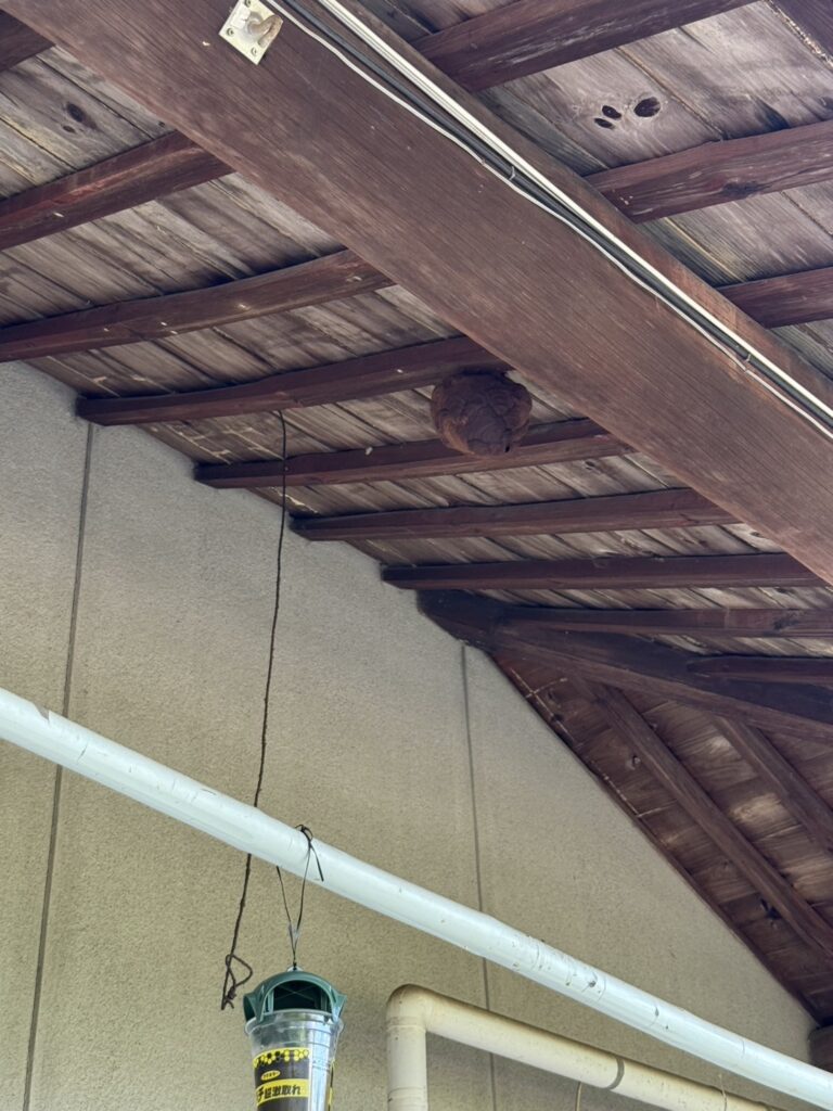 巣の場所は一階軒下、サイズはバレーボールほどの大きさで、かなり成長した状態でした。