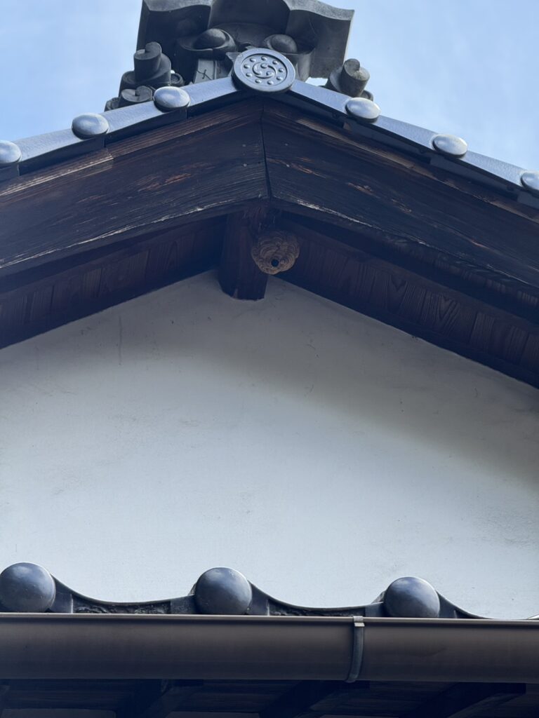 井原市西江原のお客様より、「お寺の軒下にスズメバチの巣があるかもしれない」とのご連絡をいただきました。