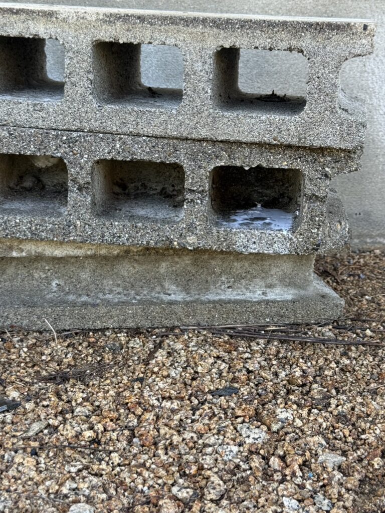 薬剤がしっかり行き渡ったのを確認し、ブロック内部にも再発防止の処理を実施。短時間で確実に駆除が完了しました。