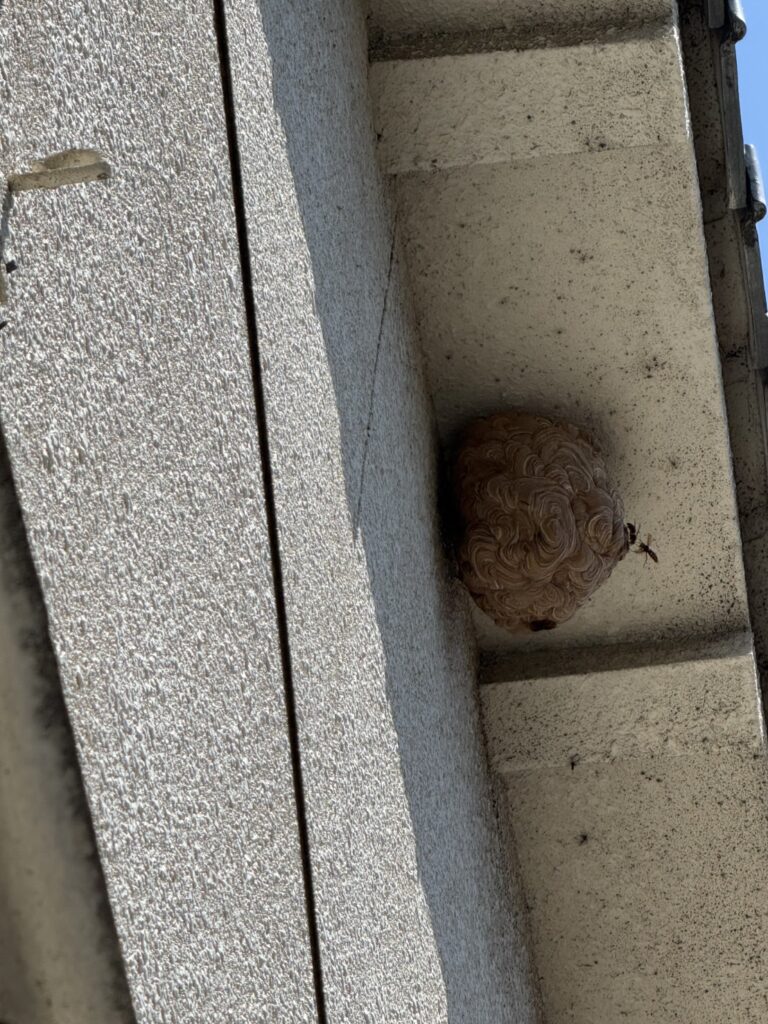 ご本人は全く気づいていなかったそうですが、確認してみると2階の軒下にかなり大きな巣が…。