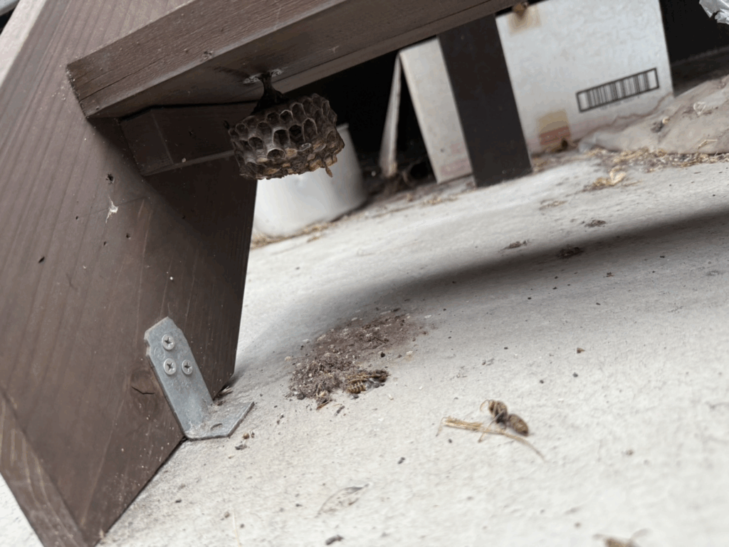 【福山市駅家町でアシナガバチ駆除|ウッドデッキ下の危険な巣を迅速対応】