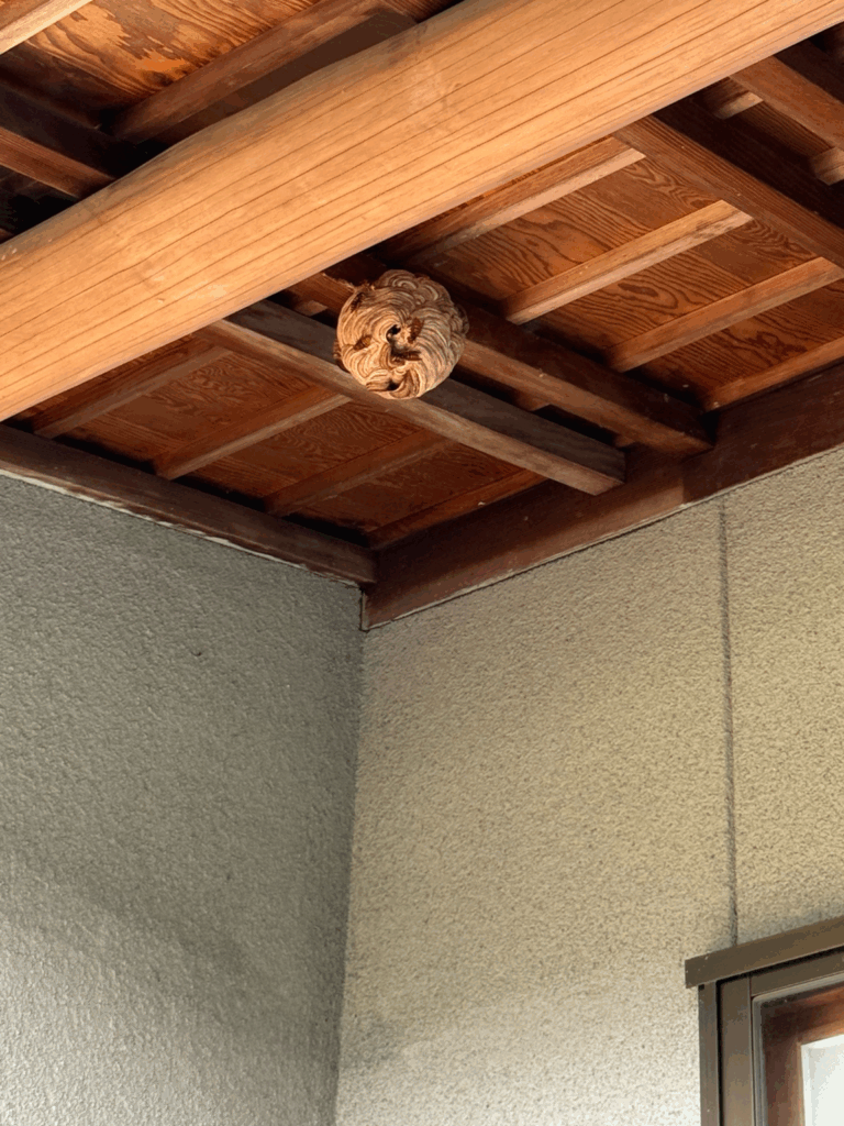 - 現場確認 – 巣の位置と蜂の種類を特定(スズメバチ・アシナガバチ)