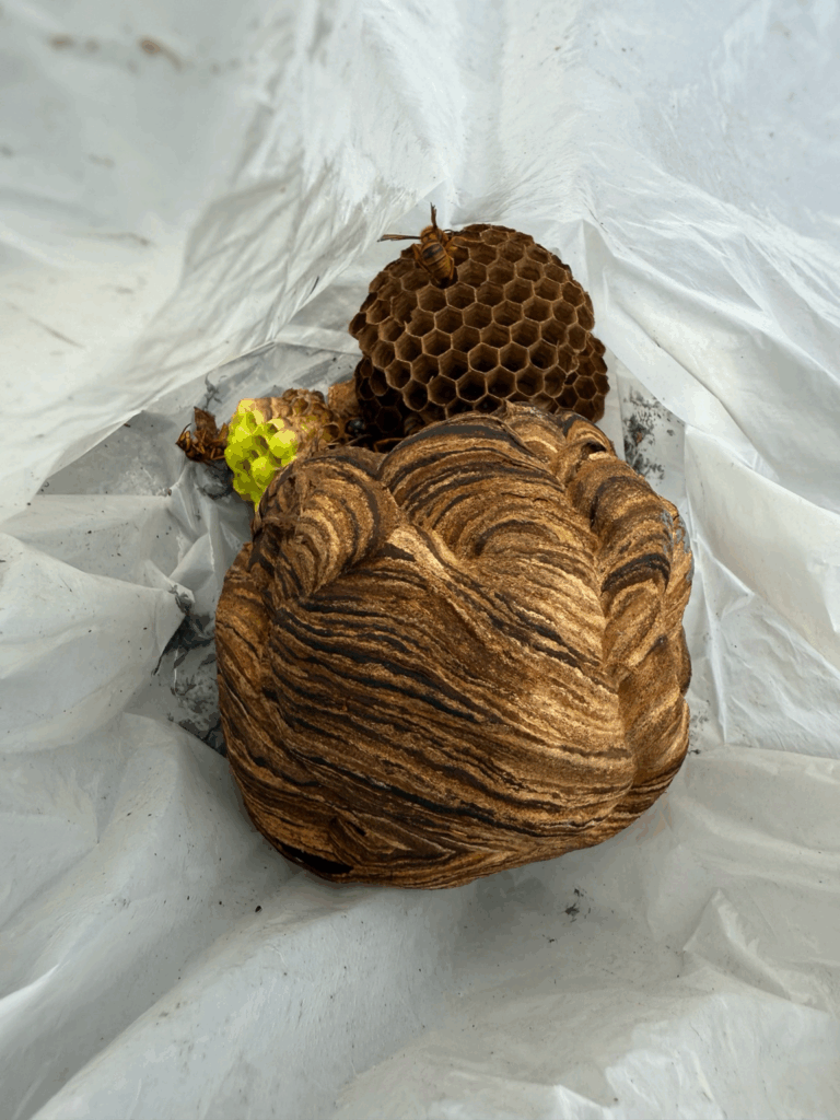 - 駆除作業 – 巣ごと撤去し、再発防止処理