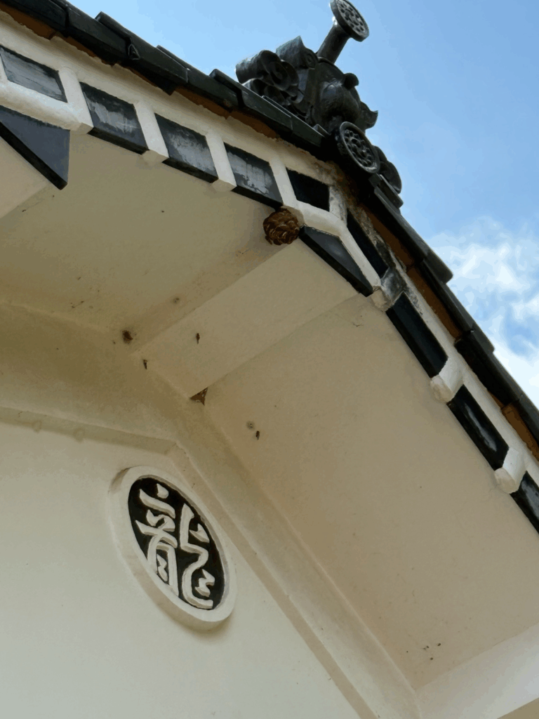 高梁市宇治町でスズメバチ駆除(高所・2階軒下)
